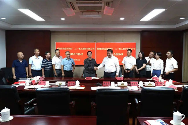 福建省应急管理厅救援协调处、应急指挥中心、防汛处,省应急救援中心相关人员和三一重工股份有限公司分管装备的相关人员参加签约仪式。