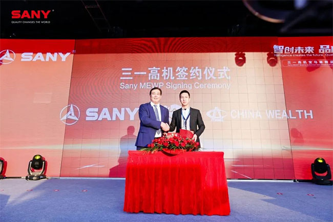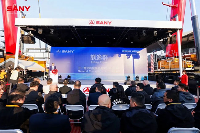 开幕日当天下午,三一高机在展会现场举行新品发布仪式,四款新品精美登场,包括剪叉式高空作业平台SPS1932AC、SPS1414HA-G(Li),曲臂式高空作业平台SPA20AC-G(Li),以及直臂式高空作业平台SPT26AC-Li。