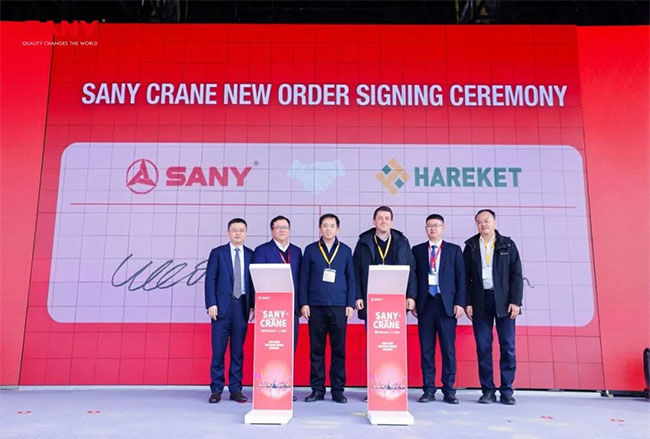 展会现场气氛热烈,三一军团在全球领航、智造巅峰、零碳未来领域的全面展示,吸引了众多国内外友人的关注和洽谈,一系列订单圆满达成。其中,三一起重机与Hareket公司签约超1亿美元订单,三一集团董事长、三一重工董事长向文波,三一重起事业部董事长袁跃,三一重起事业部总经理谢涛等现场见证。
