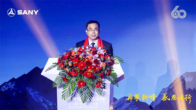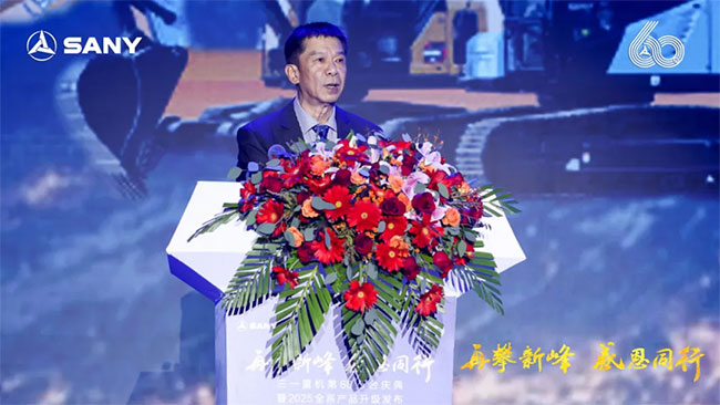 三一集团高级副总裁、三一重机董事长陈家元先生致辞:“感谢大家出席 2024年三一重机客户节。今天,我们隆重发布2025款产品,并共同见证三一重机第60万台挖掘机下线。“60万台”对于工程机械行业,是一个极具含金量的里程碑。