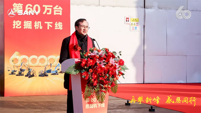 三一集团高级副总裁、三一重机总经理王政先生在致辞中表示:“寒冬难掩喜悦,见证三一挖机第60万台下线盛事。三一自1986年起,以“三个一流”为愿景,秉持“品质改变世界”使命,从湖南走向全球。这第60万台,不仅铭刻于三一的发展历程,也创造了中国挖机历史新的高度。