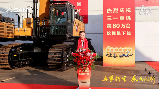 三一集团董事、三一重工总裁俞宏福先生宣布三一重机第60万台挖机下线!