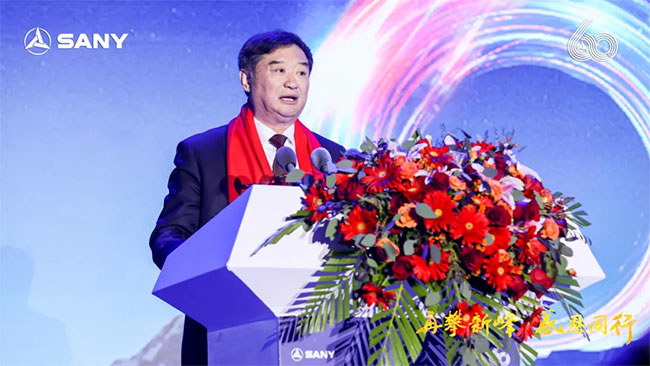 中国工程机械工业协会会长苏子孟先生出席大会并向三一重机六十万台挖掘机庆典暨2025全系列产品升级表示热烈的祝贺!