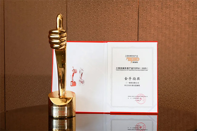 三一重机力摘金手指,且多吨位、多种类机型包揽三奖,彰显出市场与行业对三一的双重肯定。