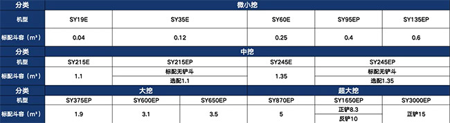 三一电挖覆盖1~300吨,共15款,含纯电、拖电二类产品,适用于钢厂、港口码头、矿山、隧道等多种工况。