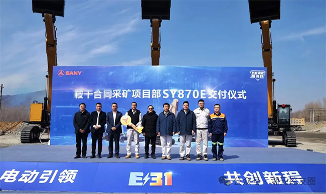 近日某大型爆破公司与三一重机在矿业生产现场举行设备交付仪式。随着6台崭新的SY870E电动液压挖掘机缓缓驶入矿区,标志着双方在绿色矿山建设领域的战略合作迈出重要一步,为矿山开采向智能化、低碳化转型注入强劲动能。