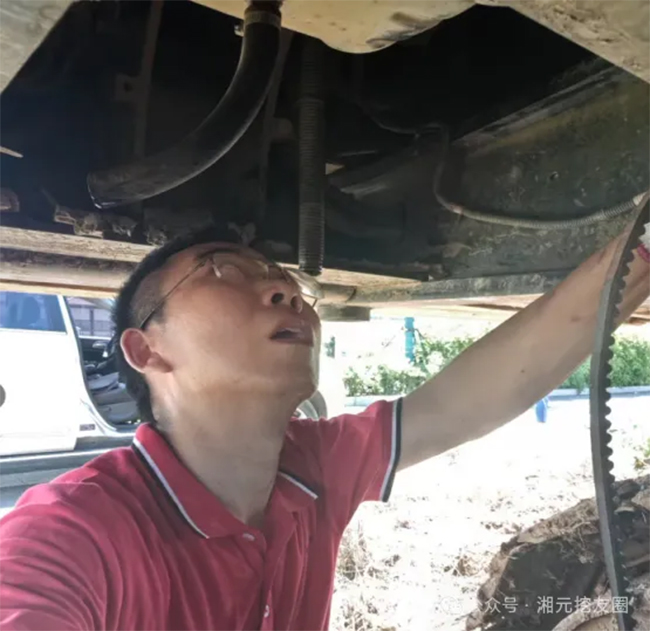 抵达现场时,正值中午 12 点,毒辣的太阳悬在头顶,仿佛要把大地烤化。驾驶员们早已躲进阴凉处休息,而陆景春却径直走向滚烫的挖机。打开引擎盖的瞬间,一股热浪扑面而来,裸露的手臂被灼得生疼。他没有退缩,蹲在发动机旁开始作业:拆除旧皮带时,烫手的零件让他不得不时不时停下擦汗;安装新皮带时,他需要精准对齐每一个轮轴,汗水顺着脸颊滴进眼睛里,涩得他睁不开眼,只能用沾满油污的手背胡乱一抹,继续埋头苦干。