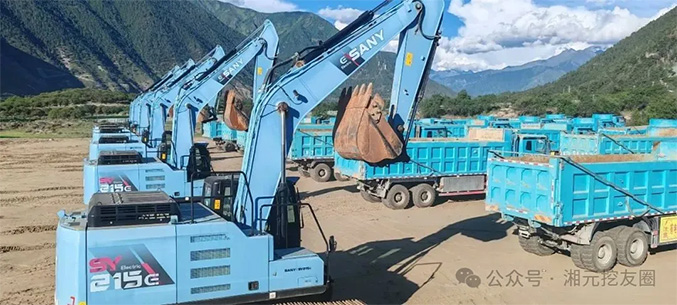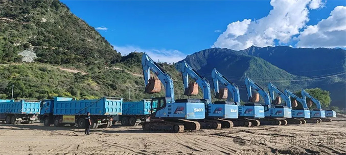 本次开工仪式上,三一电动挖掘机、电动自卸车、电动宽体车、电动装载机、电动搅拌车、泵车等成套电动设备整齐列队,深度参与,为雅鲁藏布江下游水电工程保驾护航。