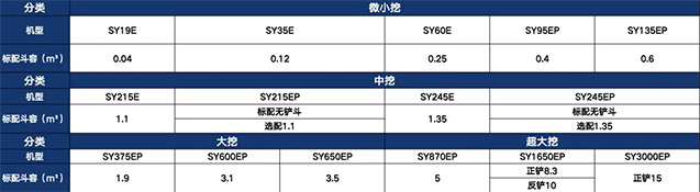 三一电挖覆盖1~300吨,共15款,含纯电、拖电二类产品,适用于钢厂、港口码头、矿山、隧道等多种工况。