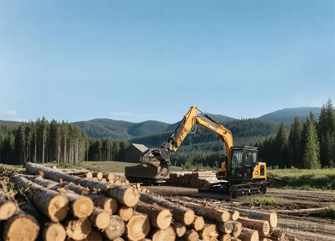 它配备林业专用加长加强型斗杆,比基础机型延长24%,作业范围直接提升6%!这意味着装卸覆盖空间大幅增加,无论是高处取料还是宽阔场地操作,都能轻松应对,彻底解放林间物料搬运的灵活性,作业效率直线飙升。