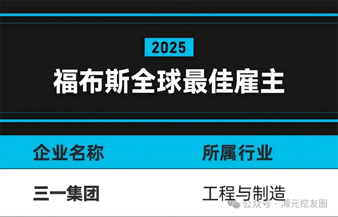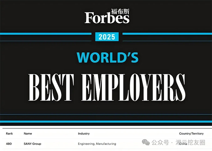 10月9日,2025《福布斯》全球最佳雇主榜单重磅发布,三一集团凭借在员工关怀、人才发展、组织建设等方面的持续投入与突出实践,成功上榜,斩获“福布斯全球最佳雇主”殊荣。